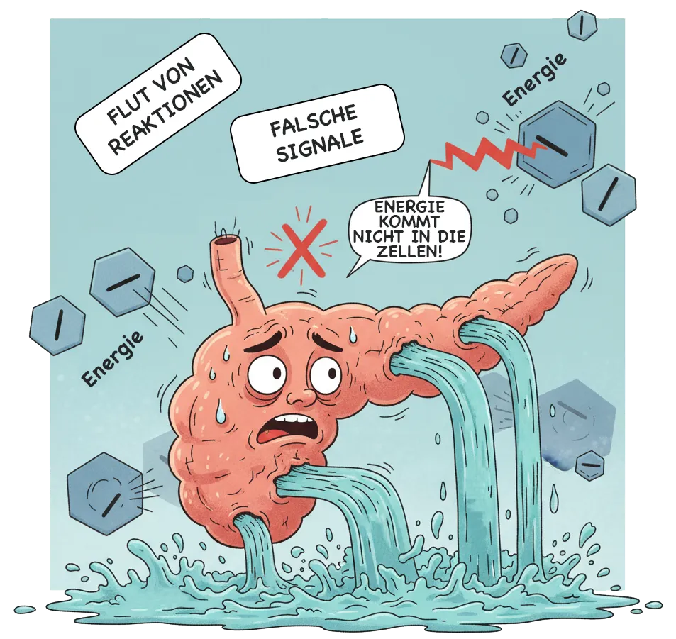 Ihr System erkennt: "Energie kommt nicht in die Zellen!" und sendet daraufhin die falschen Signale.